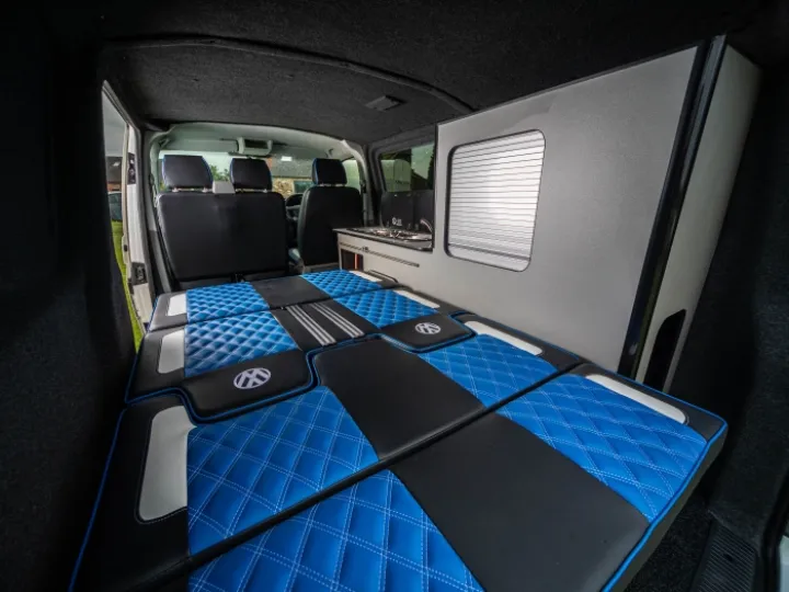 Our upholstery work has to be seen to be fully appreciated. We work with leather and suede to create wonderfully comfortable and stylish front seats which match the R&R beds and rear seating. Along with hand-stitched VW insignia, we also feature a series of bold modern colour schemes which perfectly complement the units and carpeting inside the van. We carefully plan each design to ensure each interior is stylish yet functional and very durable.