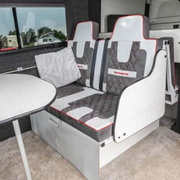 A lovely camper for larger families or those who need a bit more space. A meticulous conversion of VW's flagship van which shares its platform with the legendary Mercedes Sprinter. This example includes alloy wheels & tyres, a solar panel, and a useful roll out awning.